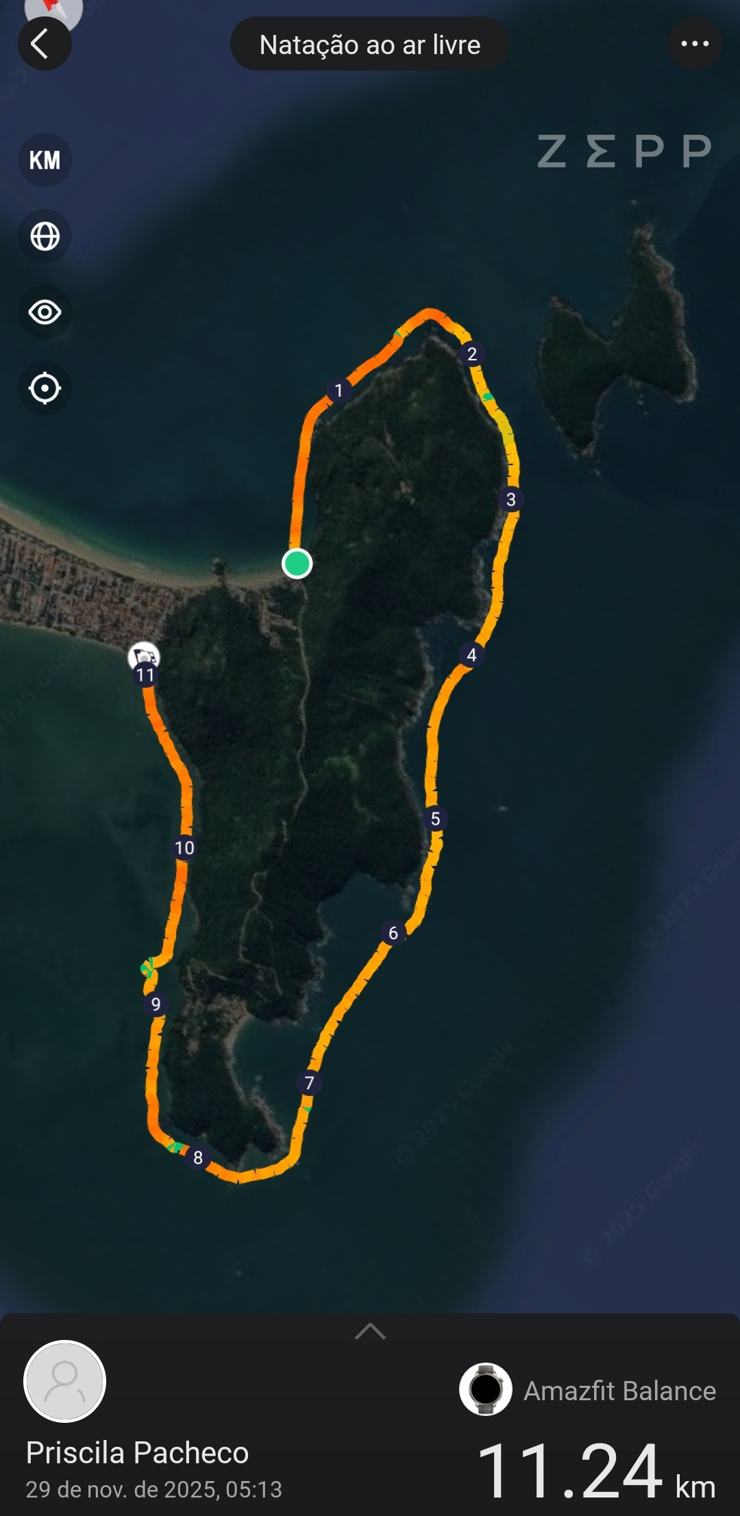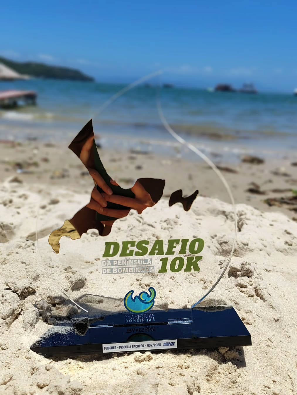 Eu visualizei muito esse dia. Eu queria que fosse especial. Por isso escolhi fazer um desafio solo e não em uma prova. Mas nem nos melhores cenários que me permiti imaginar eu consegui conceber um dia tão perfeito. Sol, nada de vento, a água em 22°C, o balancinho do mar na medida — só o necessário pra não parecer uma piscina. Mesmo no trecho que prometia ser o mais complicado — um canal entre o continente e uma ilha próxima —, o próprio barqueiro comentou o quanto era raro encontrar o mar naquelas condições.